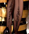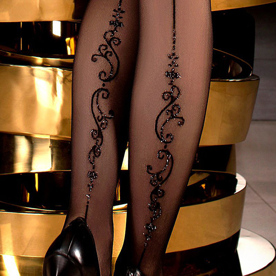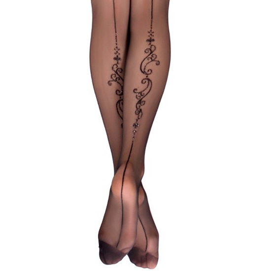 O bordado preto nas nádegas e na parte de trás das pernas serve como elemento decorativo, realçando o aspeto das pernas.