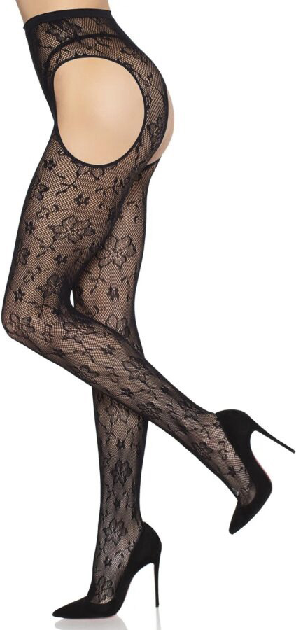 Estas meias-calças sedutoras de renda floral combinam elegância com um design ousado.