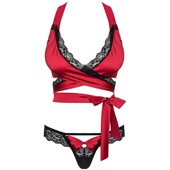 – Linda lingerie em vermelho ardente – soutien amarrado no pescoço e na cintura – look ultra feminino!