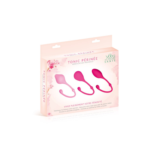Conjunto composto por 3 bolas chinesas de diferentes pesos confeccionadas em silicone.