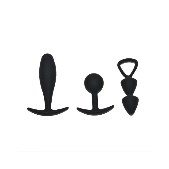 O conjunto vem em três formas diferentes, o que garante uma estimulação diversificada tanto para iniciantes quanto para pessoas com mais experiência em jogo anal.