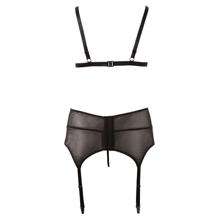 Cinta-liga com atacadores decorativos e quatro alças ajustáveis.