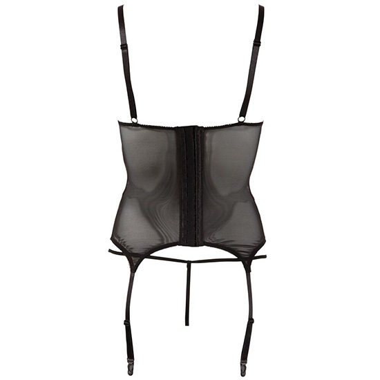 Há também um fecho de gancho nas costas. O soutien e as quatro alças do suspensório são ajustáveis.