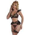 A cinta-liga, com detalhes em renda e alças ajustáveis para segurar suas meias favoritas, acrescenta um toque extra de sedução, tornando este conjunto a opção perfeita para uma noite especial. Enquanto isso, a calcinha complementa a peça com um design sedutor e confortável, que combina transparências e detalhes em renda para um acabamento irresistível.