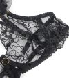 Este conjunto de lingerie preta é composto por um soutien de renda com cinta-liga e calcinha combinando, dando a você um visual elegante e ousado. O soutien apresenta um design de renda floral translúcida que delicadamente sugere a pele, enquanto seu corte lisonjeiro fornece suporte ideal sem sacrificar a sensualidade. Suas alças finas ajustáveis e fecho nas costas permitem um ajuste perfeito, realçando o busto naturalmente.