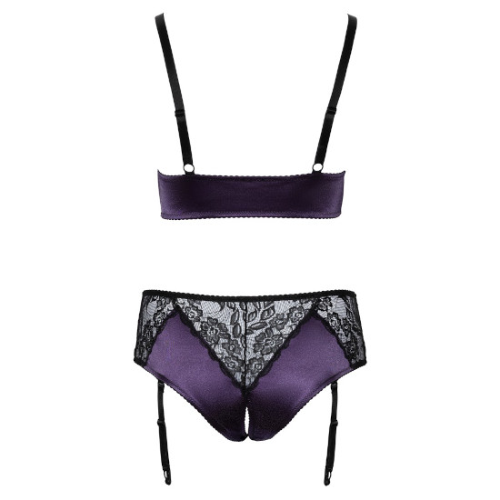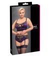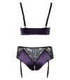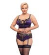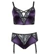 As cuecas bralette e suspensório sem entrepernas do conjunto Cottelli CURVES são feitas de uma bela mistura de cetim roxo e delicada renda preta.