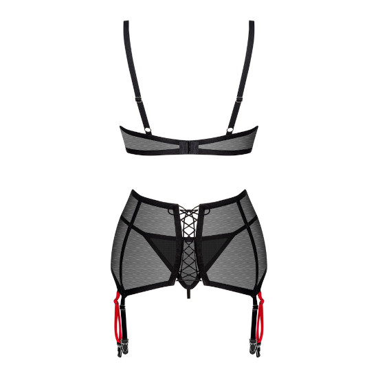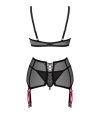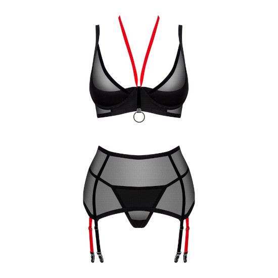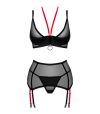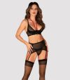 Conjunto de 3 peças Glandez by Obsessive com sutiã com aros, cinto suspensor e tanga.