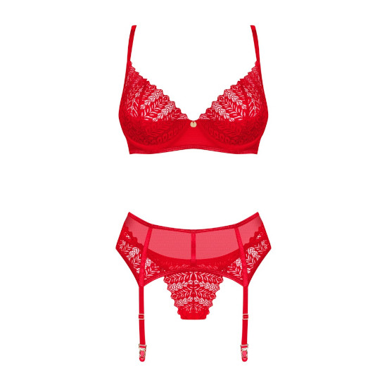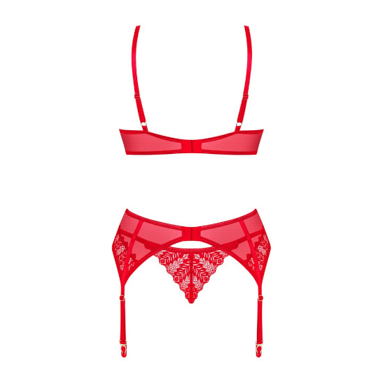 Conjunto de 3 peças Ingridia by Obsessive com sutiã com aro, cinto suspensor e tanga.