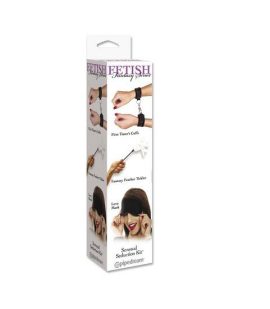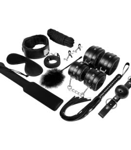 O conjunto contém uma guia, uma venda e um mini chicote para vários jogos bdsm.