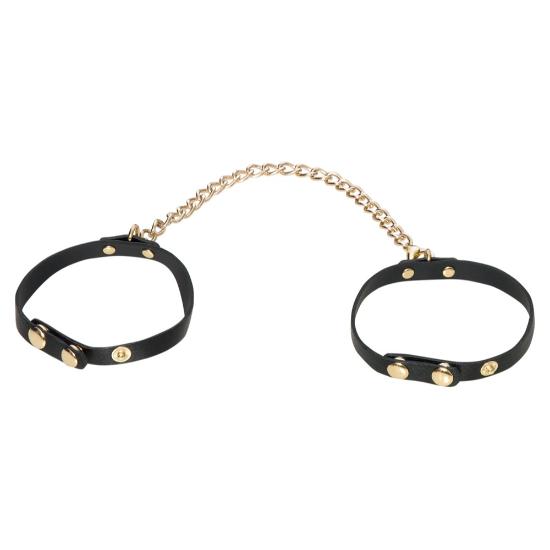 O Conjunto de Bondage de 5 peças da Bad Kitty é fabricado em pele sintética preta delicada com acessórios em dourado.