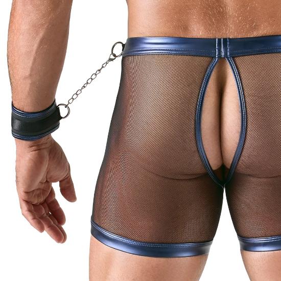 As algemas macias são feitas de wetlook azul metálico e podem ser colocadas e ajustadas com grande facilidade, graças aos seus fechos de velcro.