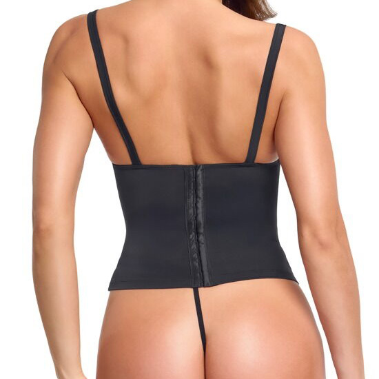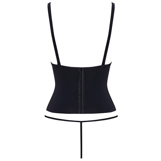 Corpete preto de copas abertas e alças ajustáveis.