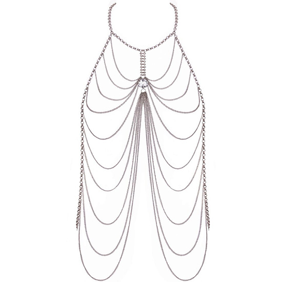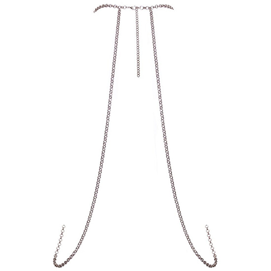 Body Chain prateado, com detalhes luxuosos em corrente.