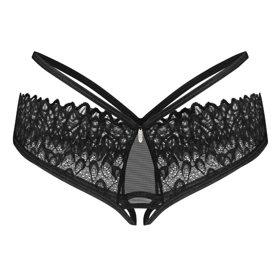 A cueca Donarella sem virilha da Obsessive tem um design sedutor e é confeccionada em material preto transparente.