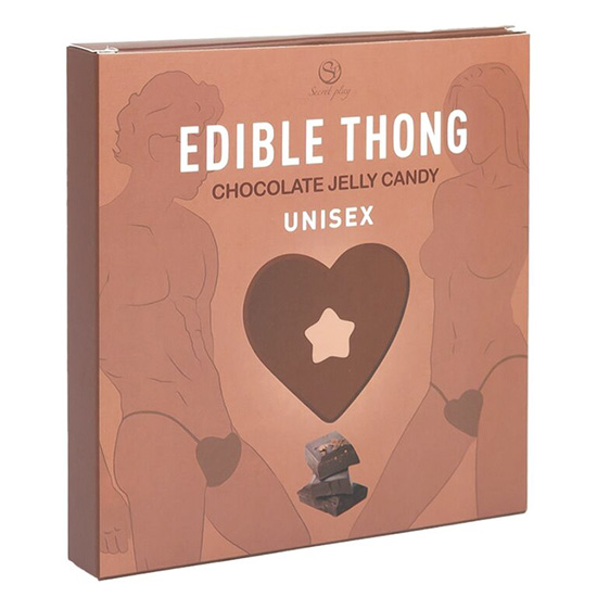 Mergulhe numa experiência sensual e divertida com a Tanga Comestível unisexo chocolate, em forma de coração da marca Secret Play.