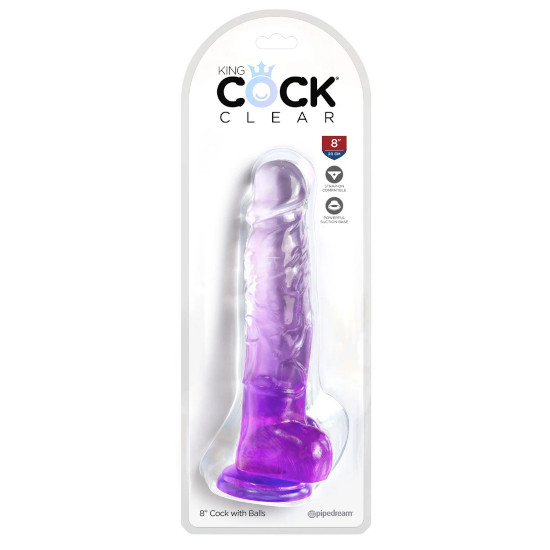 O dildo flexível e transparente 22,2Cm Cock with Balls da King Cock Clear tem um design de pénis detalhado e realista com veias distintas e cabeça grande.