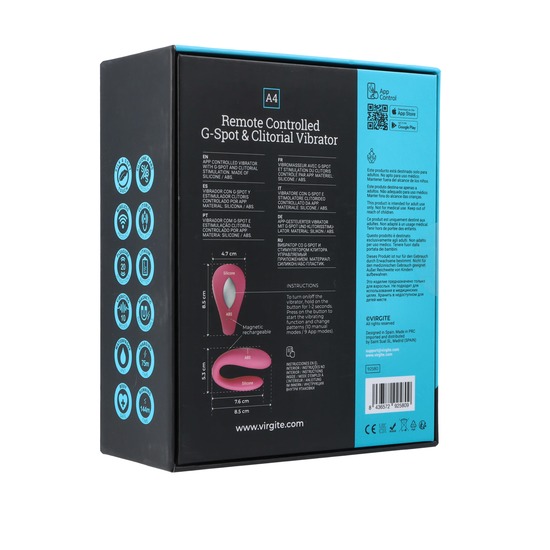 Feito de silicone macio, tem diferentes velocidades e intensidades controladas tanto pelo brinquedo como pela APP da marca.