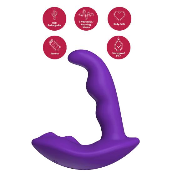 Este elegante brinquedo estimula as áreas anais interna e externa com dois motores potentes que podem vibrar em sincronia ou independentemente.
