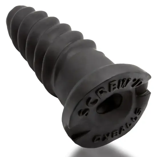 O novo plug anal para pénis da OXBALLS, o SCREWDHOLE (preenche um orifício, transformando-o numa prega de borracha mais apertada) numa mistura de silicone SILSOFT SILICONE NIGHT EDITION incrivelmente macia e flexível, de cor preta aveludada opaca — um plug anal macio concebido para as brincadeiras mais intensas e noturnas.