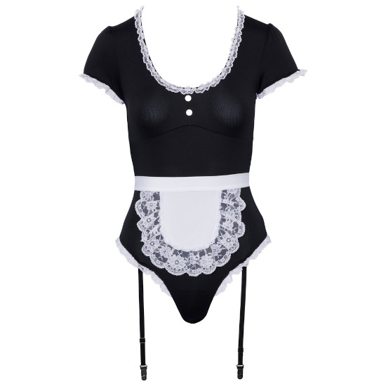 O body com suspensórios e avental fazem parte deste disfarce de empregada da Cottelli COSTUMES.