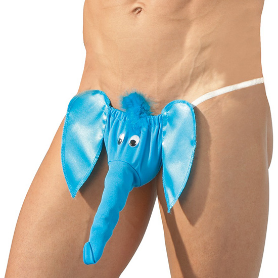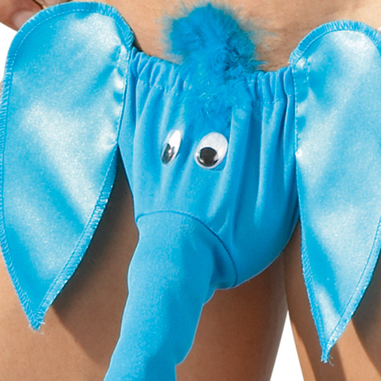 Divertida tanga-string com a forma de um elefante azul.