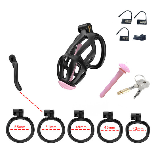 Este plug flexível e sonoro tem uma pequena vagina cor-de-rosa na frente para mostrar a sua verdadeira genitália e tem uma passagem para urinar enquanto permanece preso.