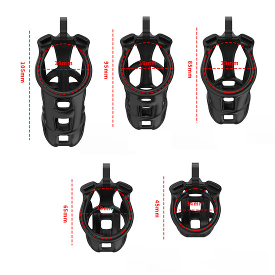 Para um ajuste perfeito, a gaiola de castidade CELLMATE Guardian vem em cinco tamanhos diferentes de gaiolas: