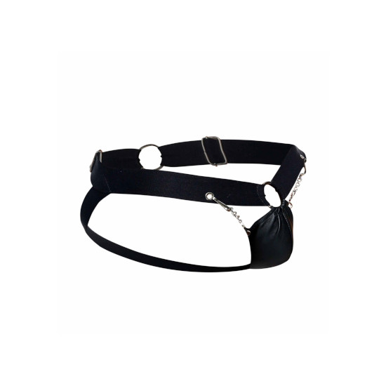 Uma bolsa de corrente na frente suporta o pénis sem diminuir o apelo sexual, enquanto as alças largas ficam nos quadris para um acabamento de suporte.