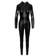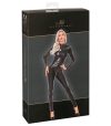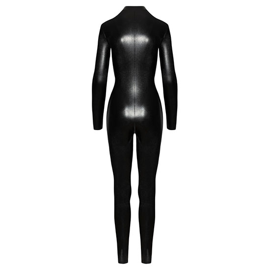 O fecho de metal de 3 vias é conveniente e erótico ao mesmo tempo porque começa na pequena gola alta, passa pela virilha e termina na parte superior das nádegas.
