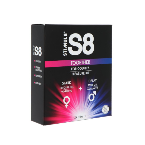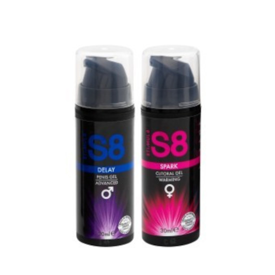 Este conjunto inclui o sexy S8 Spark Clitoral Gel para ela e o S8 Delay Gel para ele.
