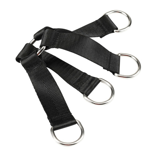 5,5 cm de largura, 25 cm de comprimento (ajustável), com mosquetões.