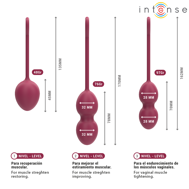 - Pacote completo de 3 bolas de Kegel: cada uma com peso e tamanho diferentes para progresso progressivo.