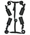 Quatro algemas macias fixam-se a tiras ajustáveis de 152 cm.