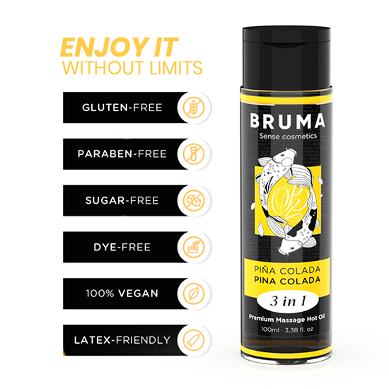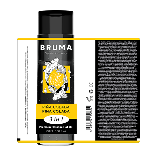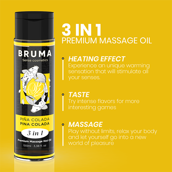 O Óleo de Massagem Premium Heat Effect com sabor tropical a Piña Colada da marca BRUMA é uma verdadeira joia no mundo do bem-estar e da intimidade.