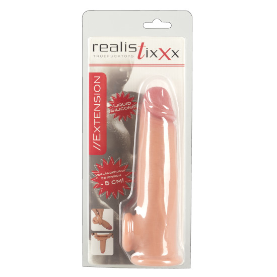 Luva peniana com design realista que amplia e estende o pénis em até 5 cm.