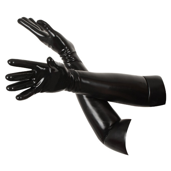 Luvas compridas feitas em latex clorado preto.