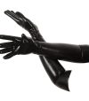 Luvas compridas feitas em latex clorado preto.