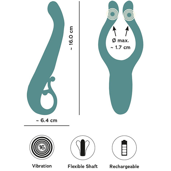 O vibrador leve e de 2 braços tem uma pega em forma de anel lindamente curvada, o que significa que é fácil de segurar e guiar. Um motor silencioso mas potente em cada braço possui 16 modos de vibração para um prazer discreto e muito diversificado.