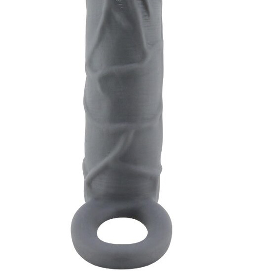 Cinza, de aspeto realista, com glande e veias salientes. Aumenta de verdade o comprimento e grossura do pénis.