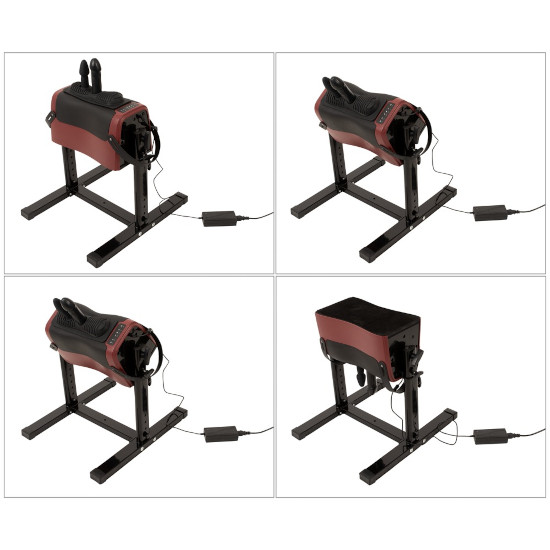 A máquina de sexo alimentada pela rede elétrica, CLIMAXXR360 da The Banger, tem um assento vibratório pontilhado e 3 acessórios (2 vibradores, 1 plug anal) que podem ser combinados de várias formas para diversão vibratória e penetrativa.