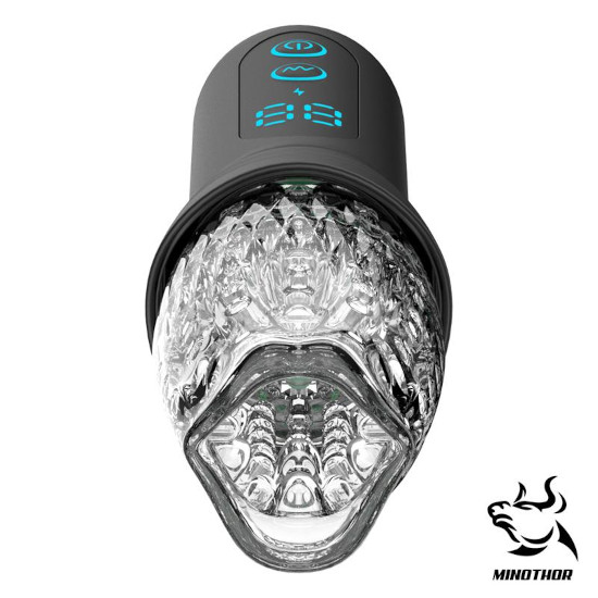O seu design não fica atrás, já que o orifício de inserção tem o formato de uma boca e o túnel interno é repleto de pequenas abas que giram para o levar ao clímax.