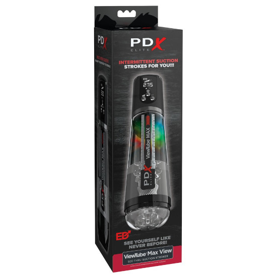O masturbador transparente, ViewTube MAX da PDX Elite, vem num estojo transparente e fácil de segurar com tampa protetora.