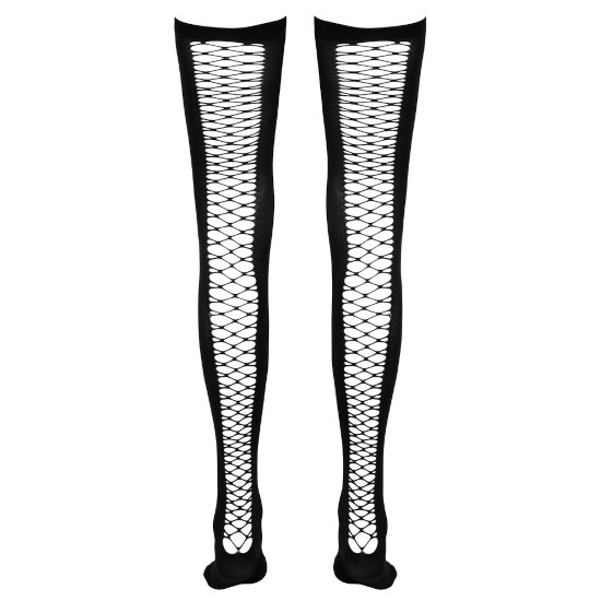 Meias opacas com costura em rede marcante nas costas.