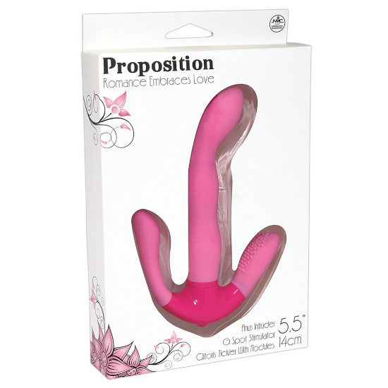Incrível vibrador 3 em 1 em material rosa muito macio e escorregadio com a ponta maior curvada para a estimulação do Ponto-G.