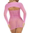 Mini-vestido e bolero em rede extensível rosa, de diferentes padrões.