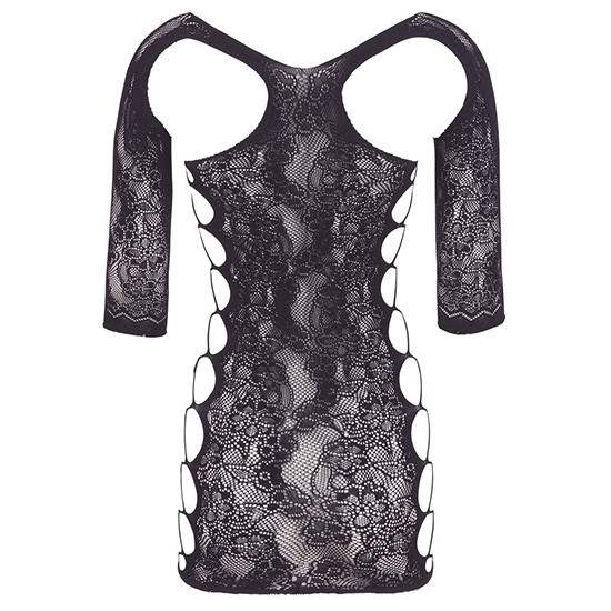 Mini-vestido em redemuito extensível preta, sem costuras.