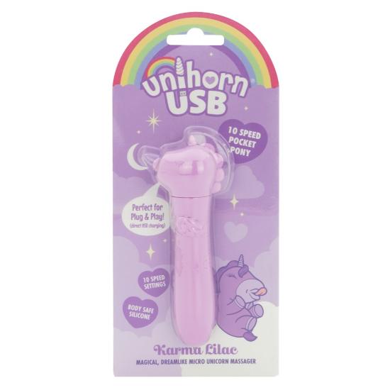 O sedutor Mini Vibrador USB Karma Lilac da Unihorn tem um design fofo de unicórnio.