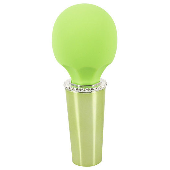Wand de massagem pequena e compacta Mini Wand Lemon da You2Toys numa cor de limão frutado e fresco e aparência metálica elegante com uma pedra brilhante como botão de controlo.