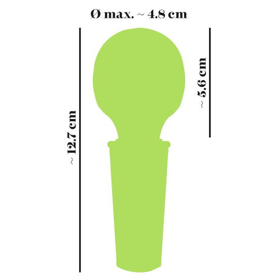 Comprimento total 12,7 cm, cabeça de massagem 5,6 cm de comprimento, Ø máx. 4,8 cm.