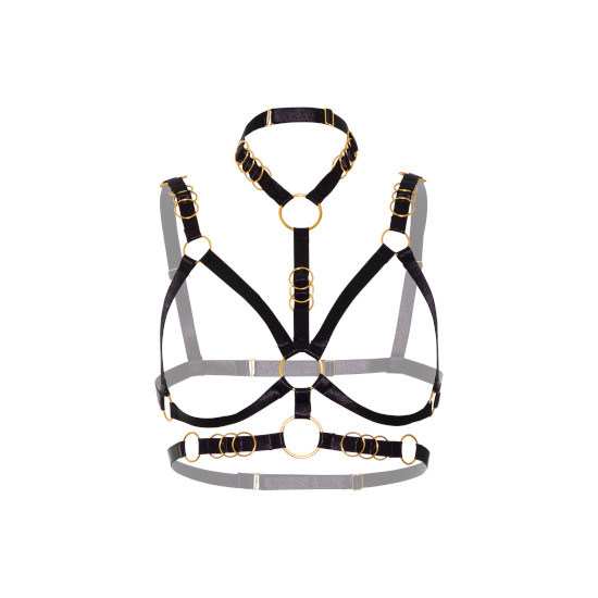 Um arnês moderno e elegante feito de cetim luxuoso, tiras elásticas.